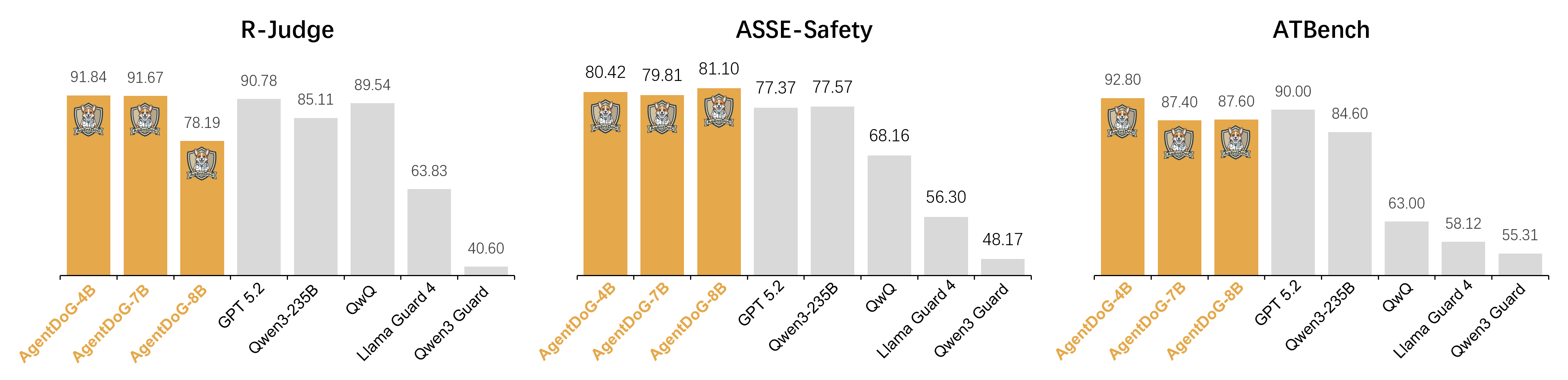 Evaluated on R-Judge, ASSE-Safety, and ATBench
