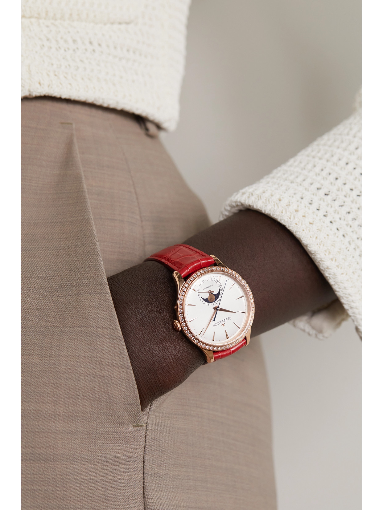 Master Ultra Thin Moon Automatic 36mm 18-karat rose gold alligator and diamond watch