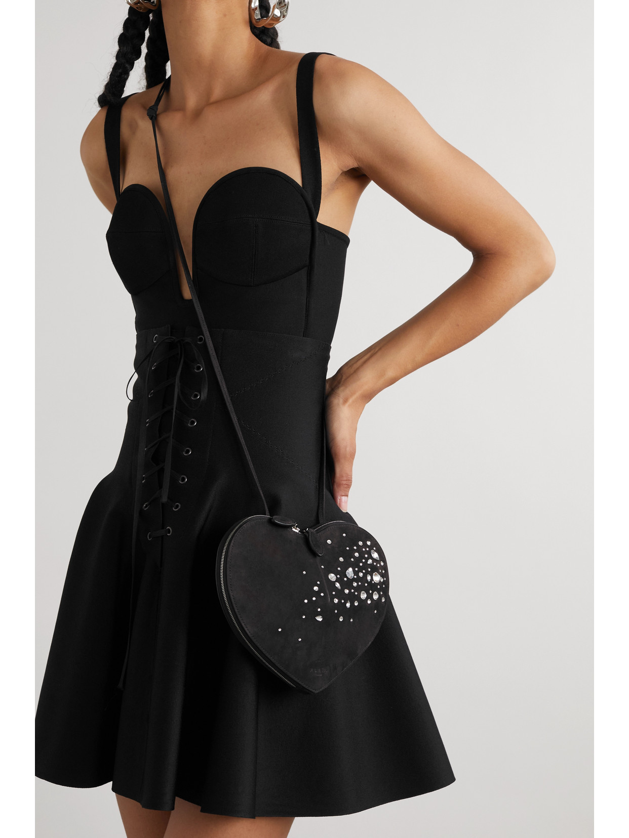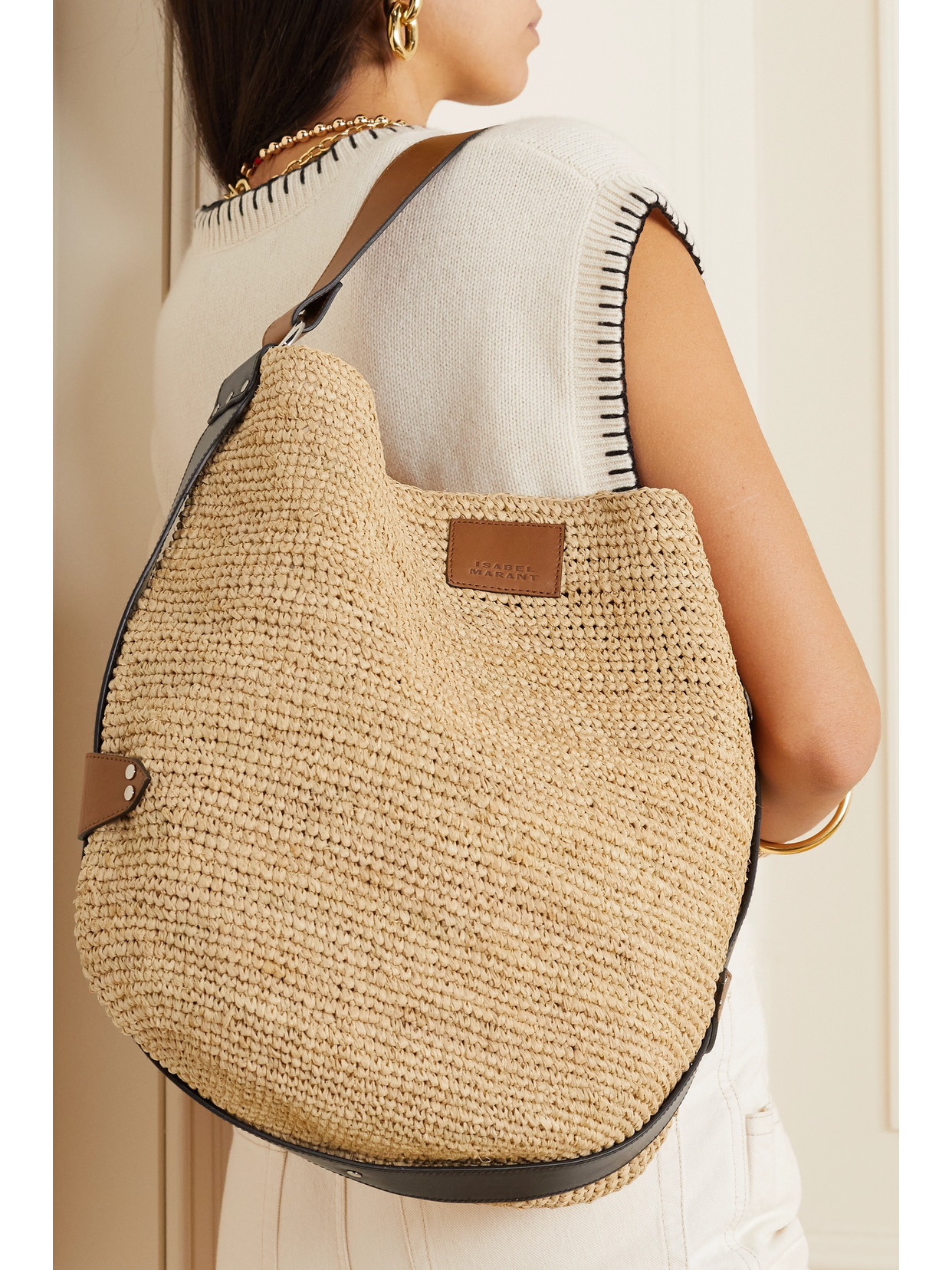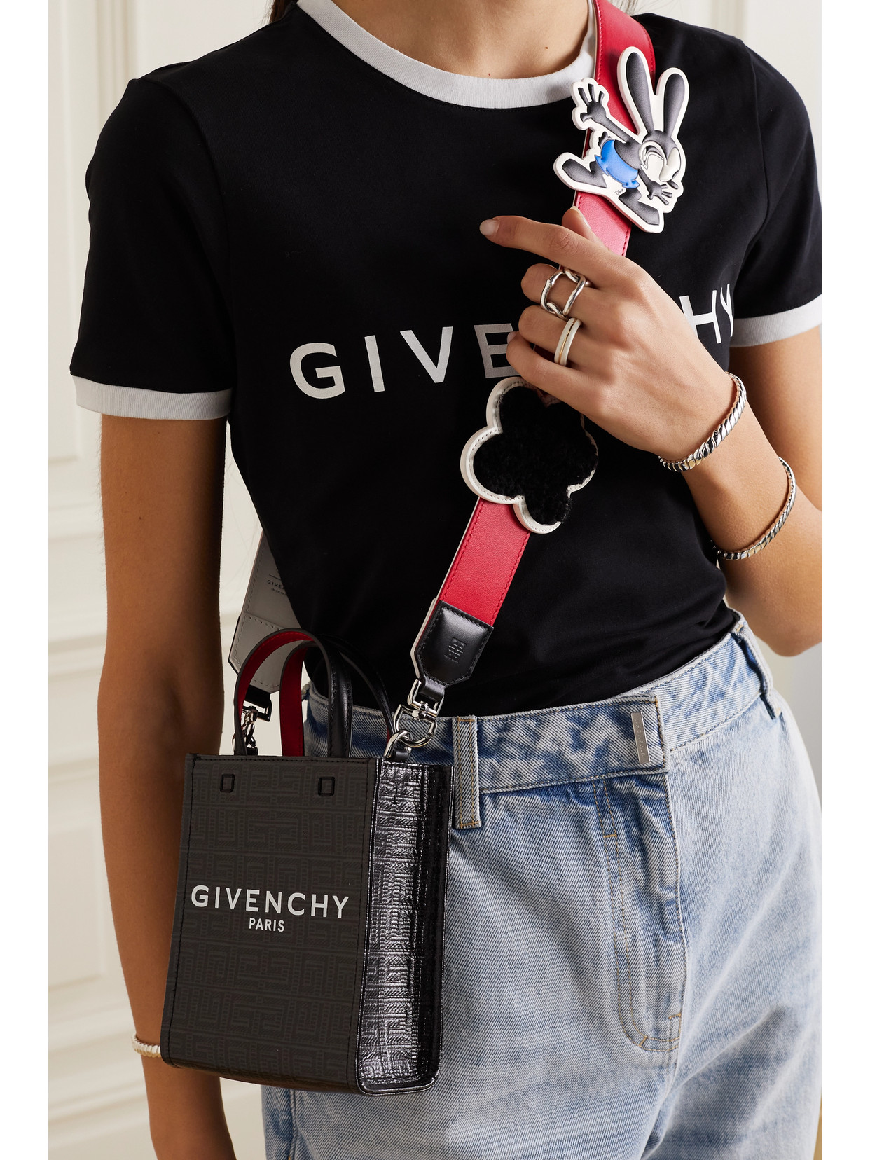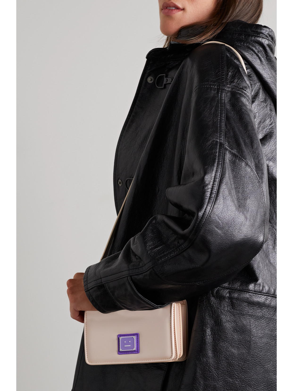 Gate mini canvas jacquard-trimmed leather shoulder bag
