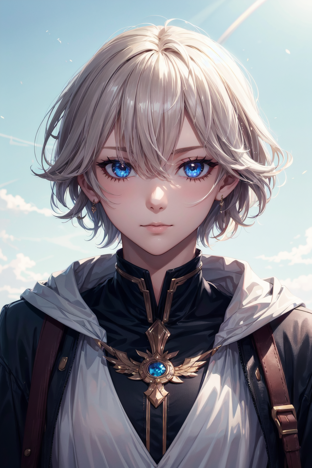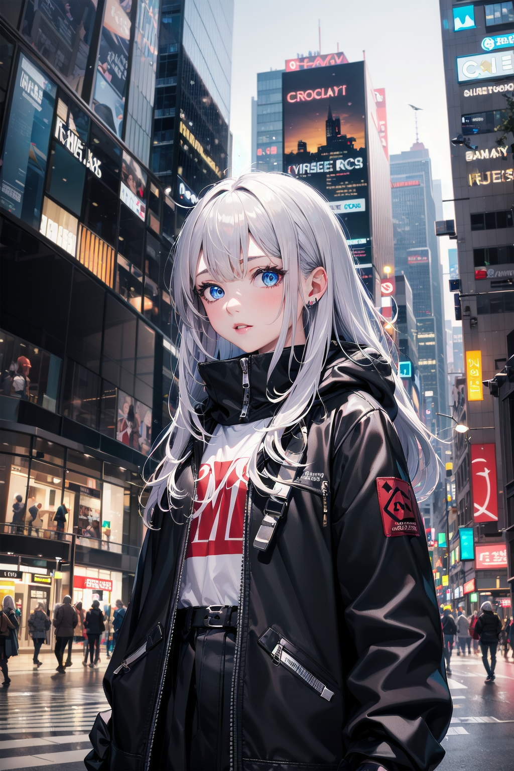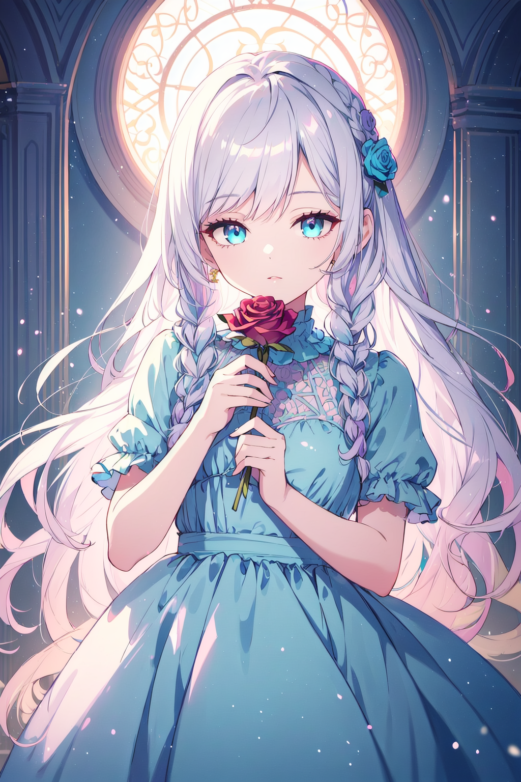 1girl, random hair, random color eyes, shining eyes, silver hair,